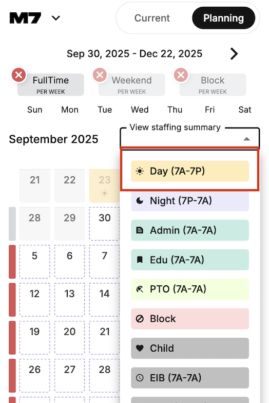 M7 now allows staff to view how many staff have inputted preferences for any day and shift type in the Staff App! This feature can be turned on and off for a unit. If you don’t see this experience, reach out to your Nurse Manager.